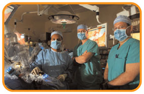 For the June 15 operation, Dr. Vates enlisted the help of two other urologists, Michael P. Esposito, M.D., and Mutahar Ahmed, M.D., who have a great deal of experience performing robotic surgery. “Dr. Esposito did most of the cutting and sewing, Dr. Ahmed did instrument placement and the major assisting, and I did very minimal assisting,” says Dr. Vates. “I am learning to use the robot in practice sessions, and it is a very interesting approach.”