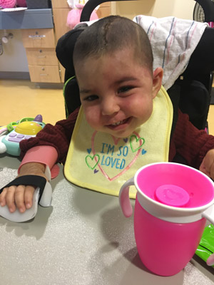 After surgery, Breezzye lived in the hospital with Riley over the next few months, which allowed her to receive all the care and rehabilitation she needed. “It was a great experience. The staff was wonderful and even though we had to celebrate her first birthday in the hospital, everyone there made sure it was celebrated and special for her.”
