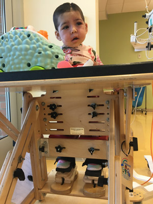 Riley also worked with the Rehabilitation Technology team at Children’s Specialized Hospital and recently received her very own gait trainer and custom supportive seat. “Mary and the entire team was great to work with. We received Riley’s custom gait trainer in October. That feeling of watching her stand for the first time was so meaningful—it changed everything.”
