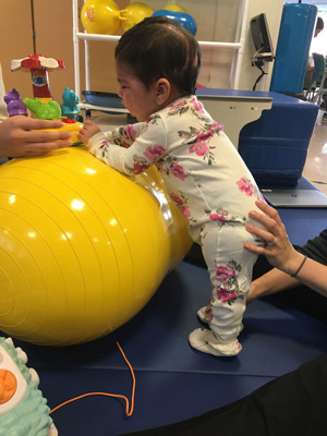 Additionally, much of Riley’s occupational therapy included working on participating in age appropriate self-care activities like pulling off socks and self-feeding during mealtimes. “Riley was such a sweet little girl,” shares occupational therapist Danielle. “She loved snuggles and whenever she was tired, she would just snuggle up on your lap and let you know it was time for a break.”