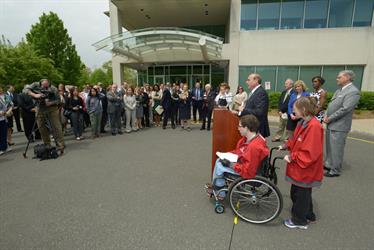 To mark the one month countdown to the Special Olympics 2014 USA Games, Barnabas Health held a ribbon-cutting ceremony at their corporate office and facilities to kick off their system-wide Half Marathon Walking Challenge, a month-long employee health initiative. Barnabas Health is a proud Founding Partner of the 2014 Special Olympics USA Games.