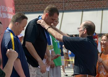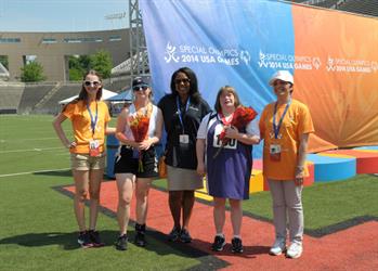 Barnabas Health employees and volunteers enjoy the second day of competition of the 2014 Special Olympics USA Games.