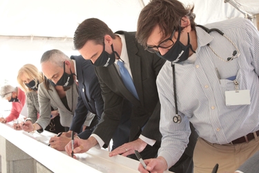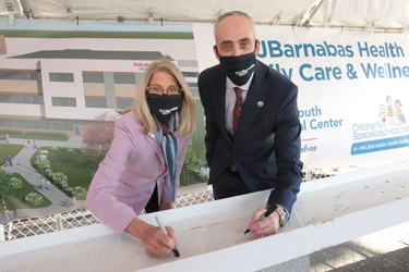 Monmouth Medical Center and Children’s Specialized Hospital hosted a beam signing with what will be the ceremonial final beam of the four-story steel frame of the future RWJBarnabas Health Family Care and Wellness at the Monmouth Mall in Eatontown, New Jersey.