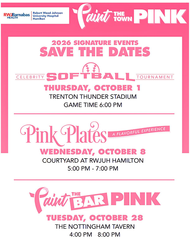 Hamilton Township and surrounding Mercer County municipalities will be awash in a sea of pink when the Young Professionals Group and Development Committee at Robert Wood Johnson University Hospital Hamilton (RWJUH Hamilton), an RWJBarnabas Health facility, celebrate the second annual Paint the Town Pink.