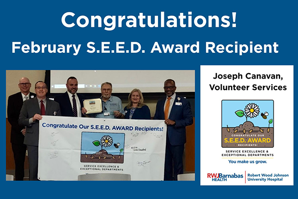 Congratulations to our February S.E.E.D. award honoree: Joseph Canavan, Volunteer Services! This award honors non-clinical team members or departments that deliver a best-in-class service experience.