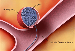 Once the catheter is in place, very tiny platinum coils are advanced through the catheter into the aneurysm. These tiny, soft, platinum coils, which are visible on X-ray, conform to the shape of the aneurysm. The coiled aneurysm becomes clotted off (embolization), preventing rupture. This procedure is performed either under general or local anesthesia.