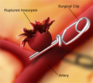 Open craniotomy (surgical clipping). This procedure involves the surgical removal of part of the skull. The physician exposes the aneurysm and places a metal clip across the neck of the aneurysm to prevent blood flow into the aneurysm sac. Once the clipping is completed, the skull is secured back together.