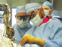 the stimulating leads, guided by the neurophysiologist, and taking up