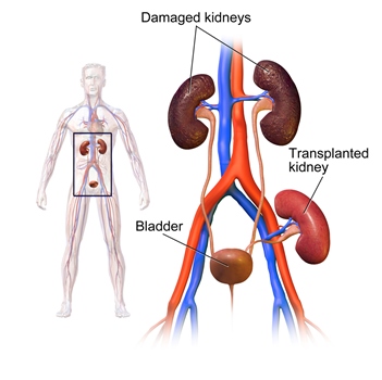 Once a compatible organ has been found, the surgeon places the kidney on one side of the recipient’s front lower abdomen. The kidney placement in the abdomen allows the surgeon to more easily connect the kidney to the bladder. To ensure an adequate blood supply, the surgeon also attaches the kidney to an artery and vein that lead to the legs. In most cases, the patient’s native (original) kidneys are not removed. A tube (catheter) will be inserted in your bladder to help pass urine and monitor urine output.