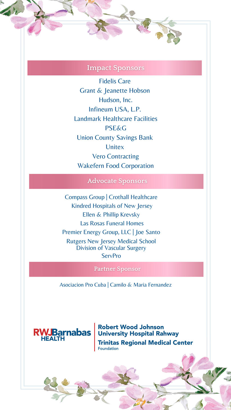 For all event and sponsorship information, please call Luis Maldonado at 732-499-6135 or email Luis.Maldonado@rwjbh.org.