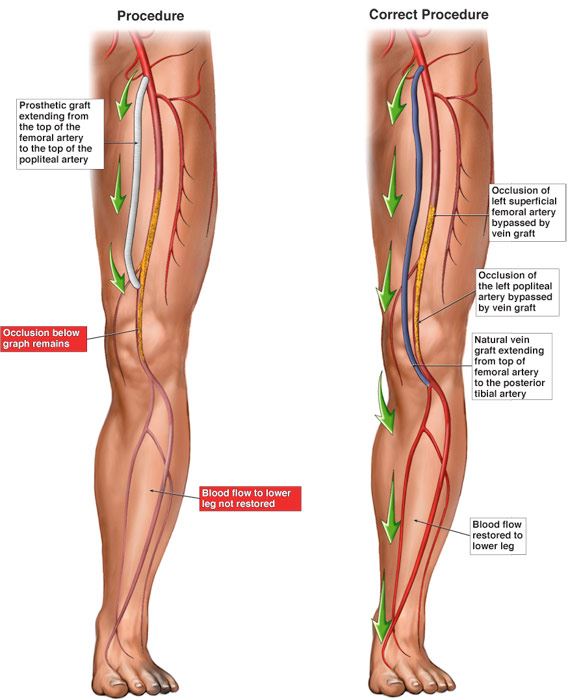• The doctor will determine whether to use a man-made graft or a vein from the leg to bypass the diseased artery.