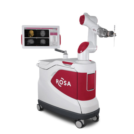 ROSA ONE Brain is a surgical navigation and positioning system using robotic technology that allows surgeons to place instruments in the brain through tiny holes in the skull.
