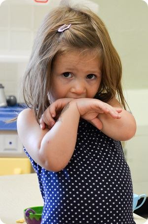 little girl holding arms