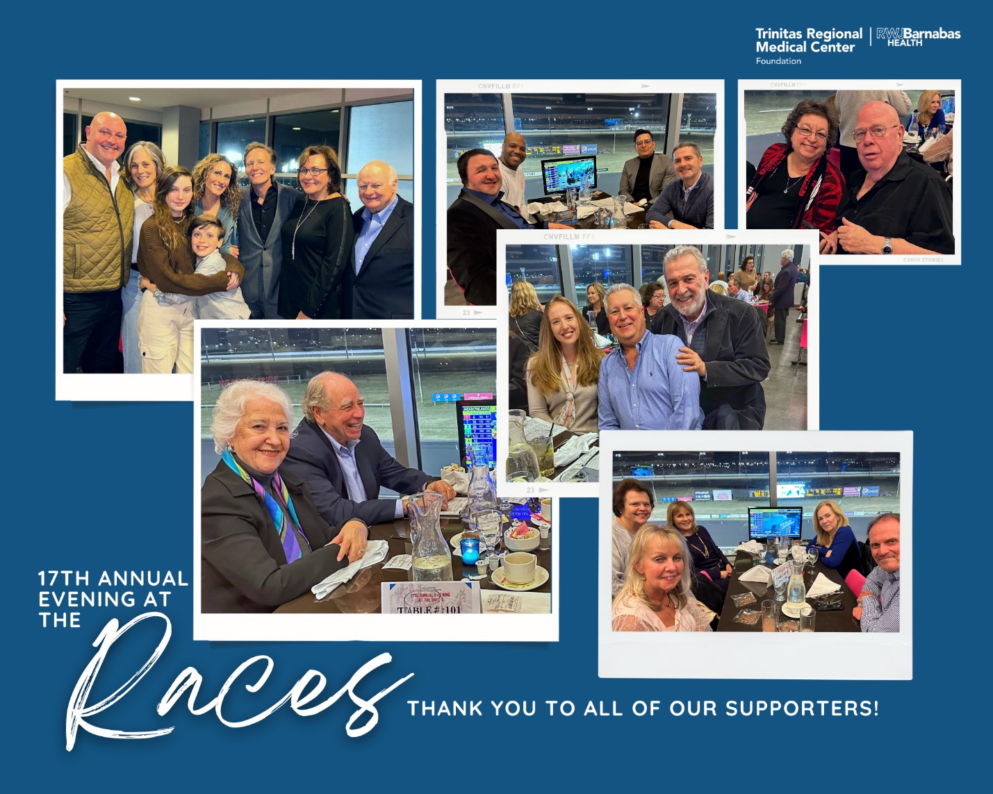 Trinitas Regional Medical Center Foundation proudly welcomed back the hospital’s Evening at the Races fundraiser event on Saturday February 25, 2023. Guests were invited to step up and place their bets at an exciting evening of harness racing along with exceptional food, drinks and company at Meadowlands Racing and Entertainment. The event supported the programs and services of Trinitas Regional Medical Center | RWJBH.