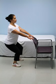 Starting Position: Stand in front of a table or chair, holding on to the support with both hands.