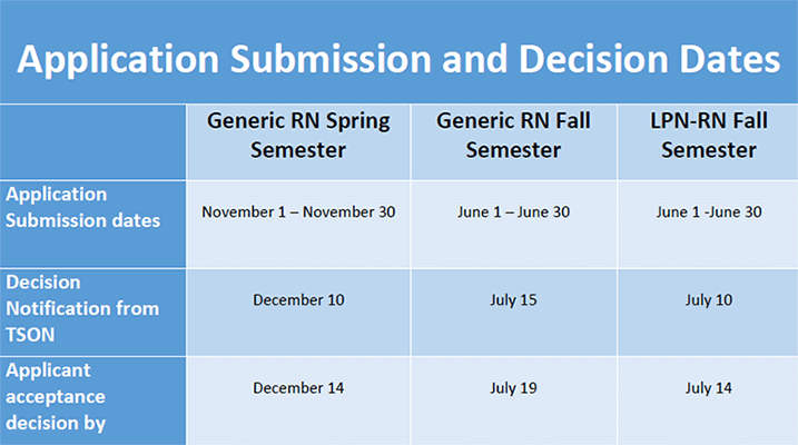 Application submission and decision dates for RWJBH School of Nursing